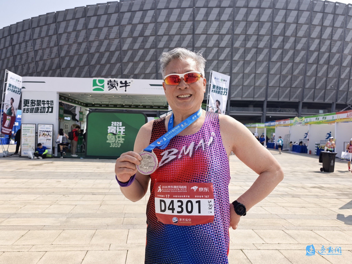 (速新闻记者 蔡依瑾 见习记者 云春燕)2026京东宿迁马拉松暨大运河马拉松系列赛(宿迁站)的赛道上,既有青春的热血奔涌,也有岁月沉淀的热爱与坚守。67岁的南京跑者陈建,带着20余年的牵挂重返宿迁,以一场刷新PB(个人最好成绩)的半程马拉松征程,感受这座城市的蝶变与温情,也深情诉说着对迁马的偏爱。